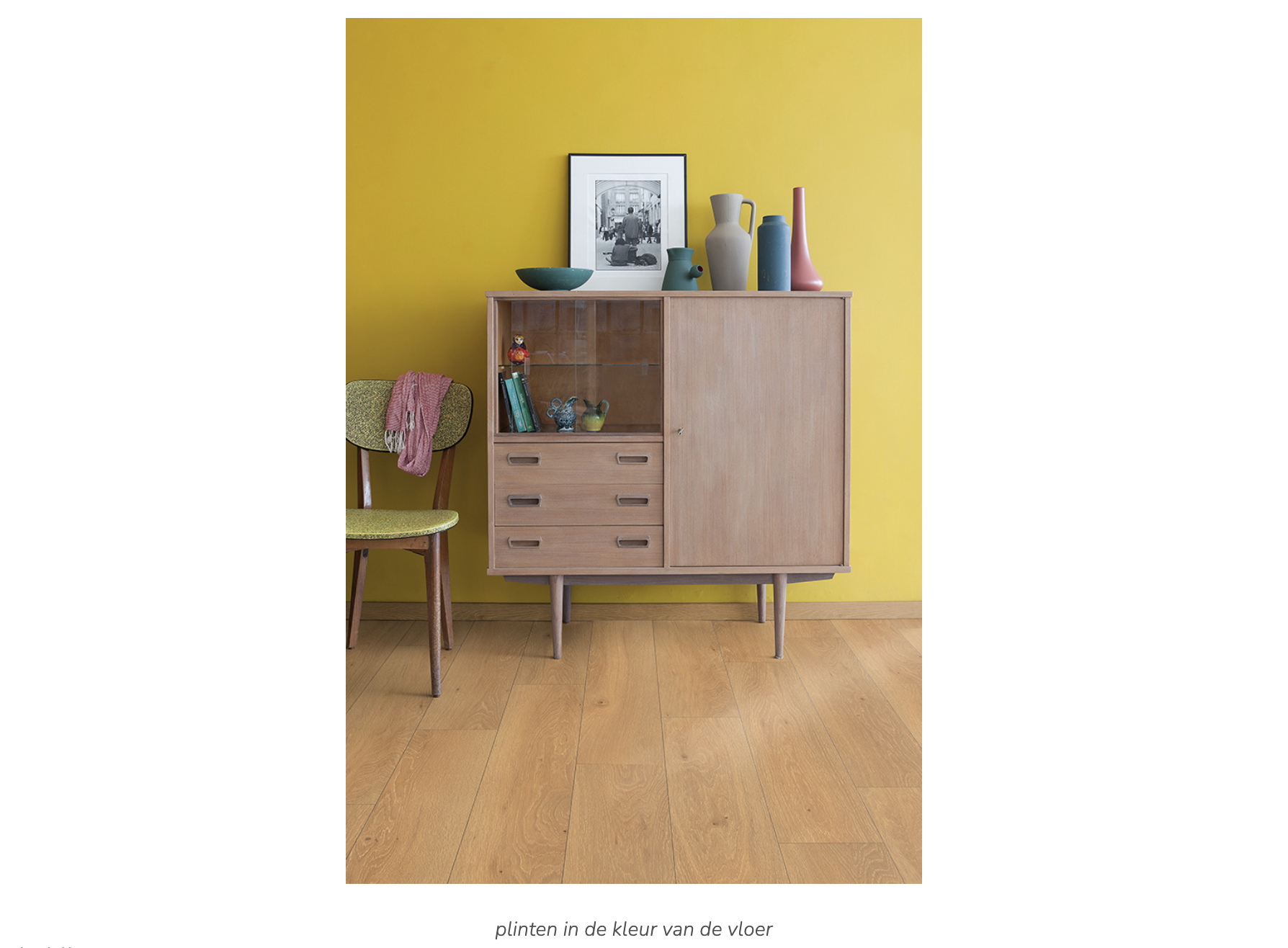 De plinten zorgen voor de afwerking van de vloer tegen de muur, maar tegelijkertijd ook voor de overgang van de vloer naar de muur. Daardoor spelen plinten ook een rol in het optische effect. Beter gezegd, de kleur van de plinten speelt een rol. Kies je voor plinten in de kleur van de muur of een andere kleur, dan zal de vloer kleiner worden. Kies je voor plinten in de kleur van de vloer, zal de vloer juist groter worden.